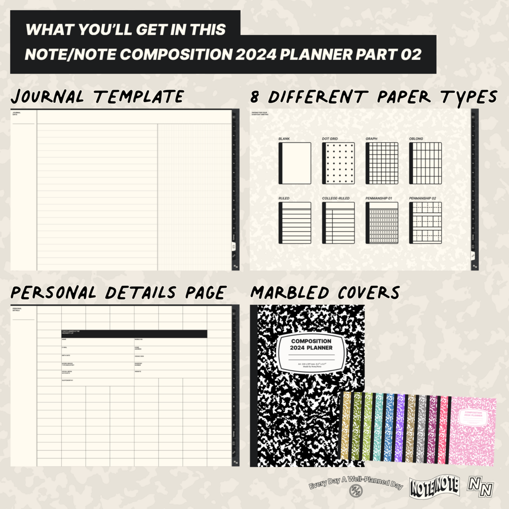 ✦ Note/Note Composition 2024 Planner — Light Mode ✦