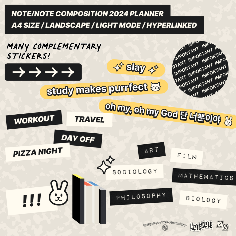 ✦ Note/Note Composition 2024 Planner — Light Mode ✦